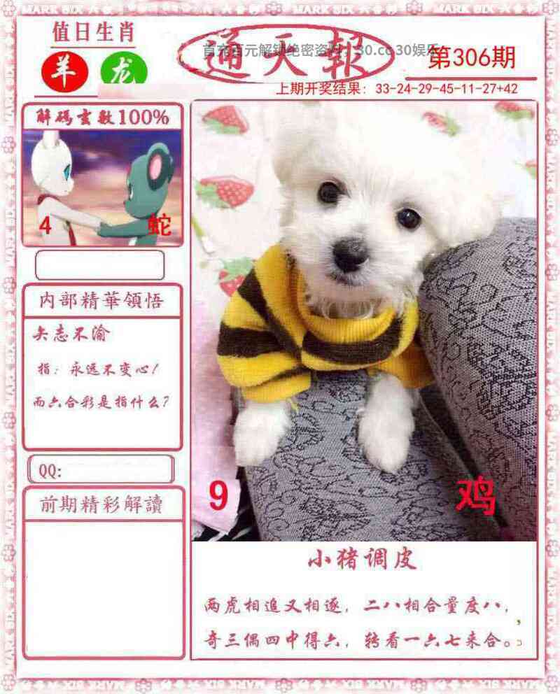 | 307期:六肖 | 猪羊鸡蛇狗龙 | 开狗20准 |